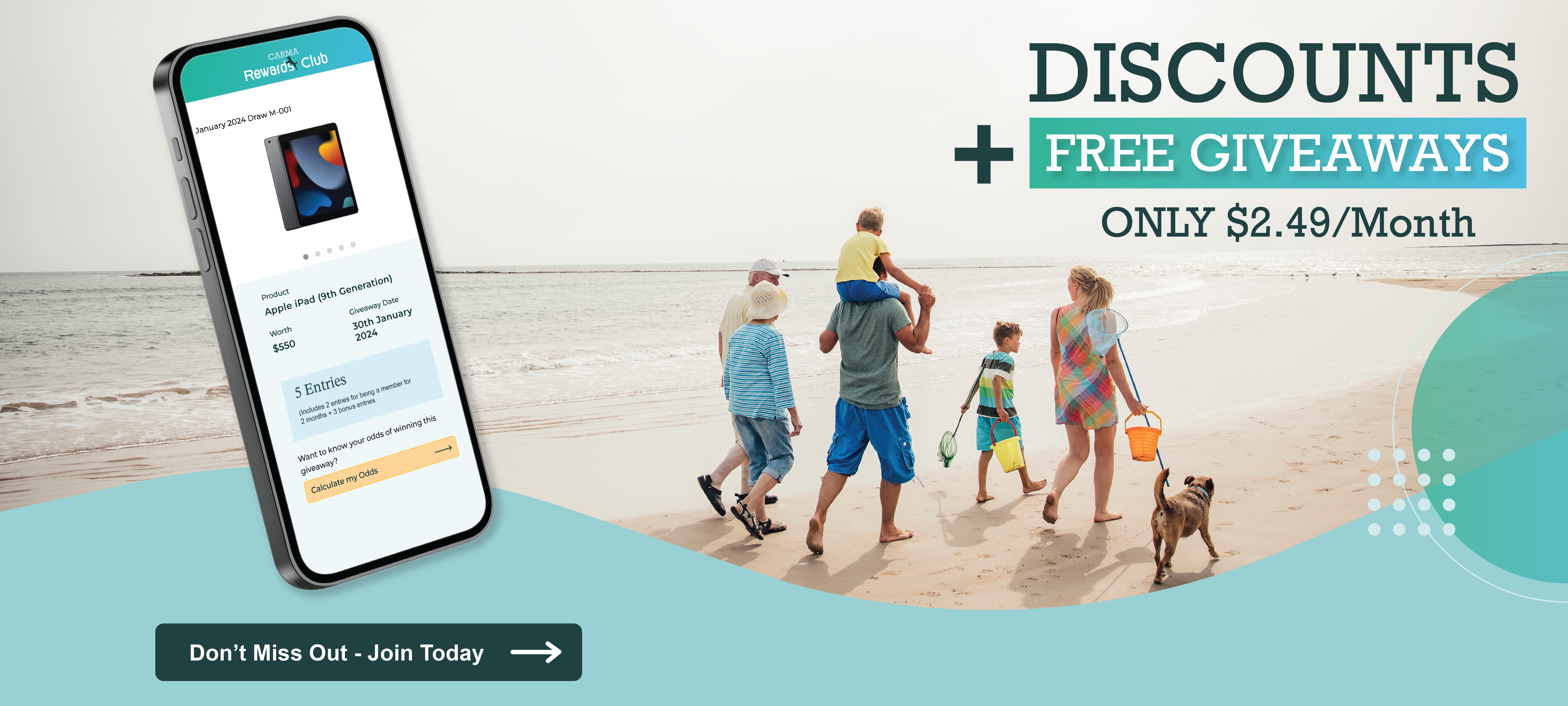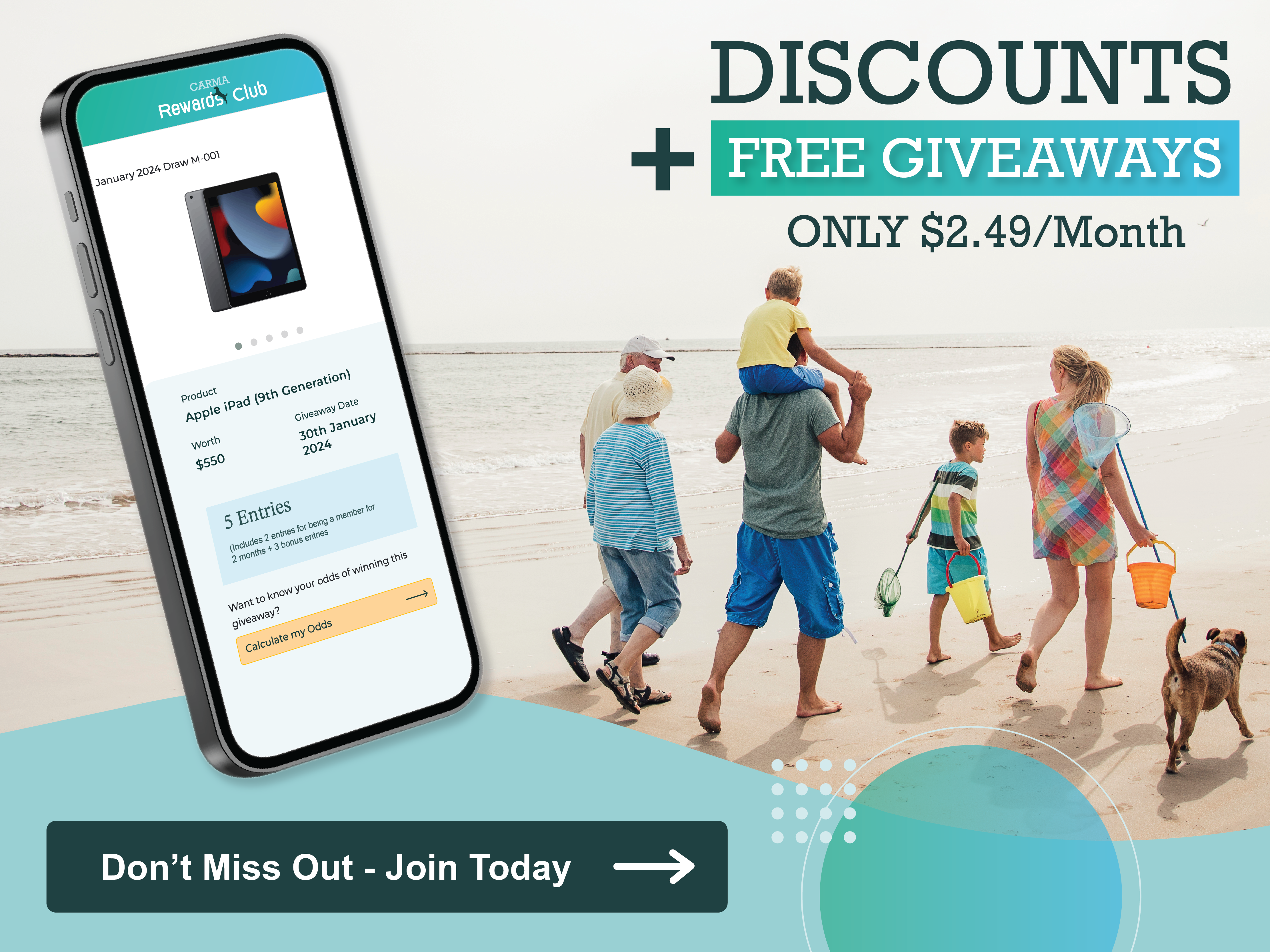 When you join CARMA Rewards Club or renew your membership, you will be issued with FREE giveaway entries. The amount of entries you receive will depend on your membership type and length of your membership.